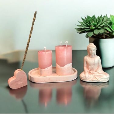 ✨2 Velones, bandeja, Buda + porta sahumerio con sahumerio potente $1500