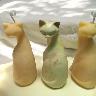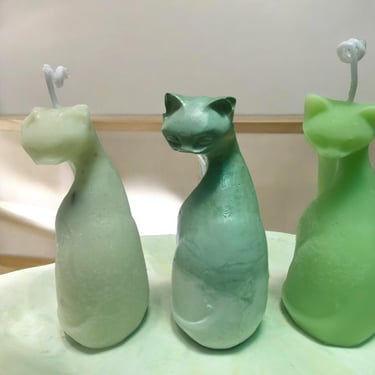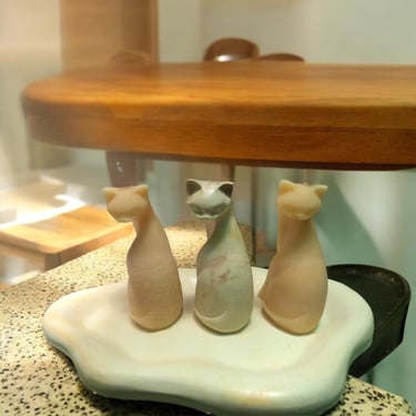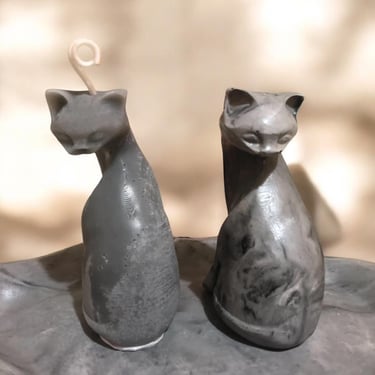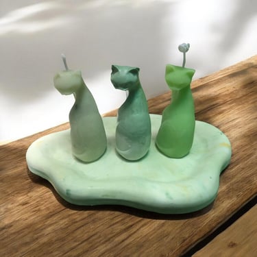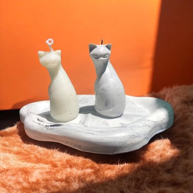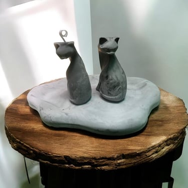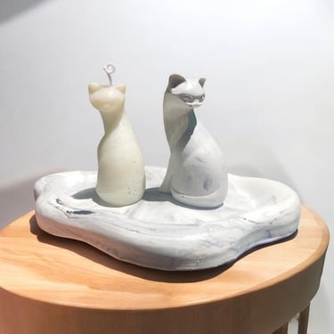 Gatitos en cemento y gatitos velas acompañado de bandeja